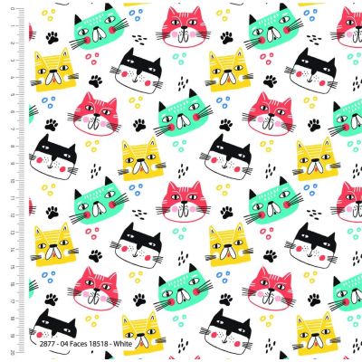 Mochis Pals Cats Faces, White Cotton