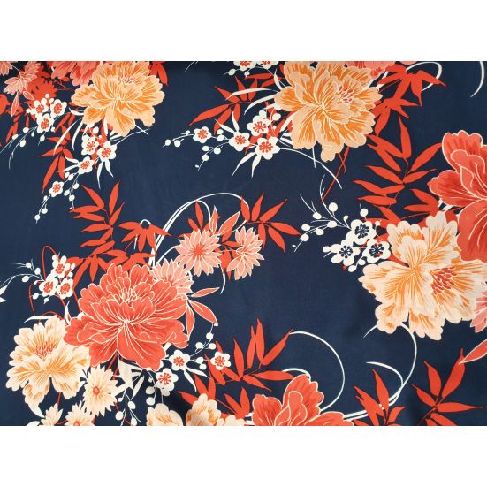 Crepe Navy Peach Red Floral